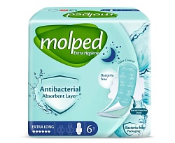 Прокладки Molped антибактериальные с крылышками Ночные 6шт