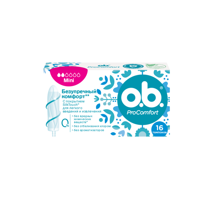Тампоны o.b. ProComfort разработаны таким образом, что объединяют в себе технологию спиралевидных желобков для надежной защиты и уникальное шелковистое покрытие SilkTouch для комфортного введения. Благодаря шелковистому покрытию SilkTouch тампон легко скользит, обеспечивая легкое и мягкое введение.