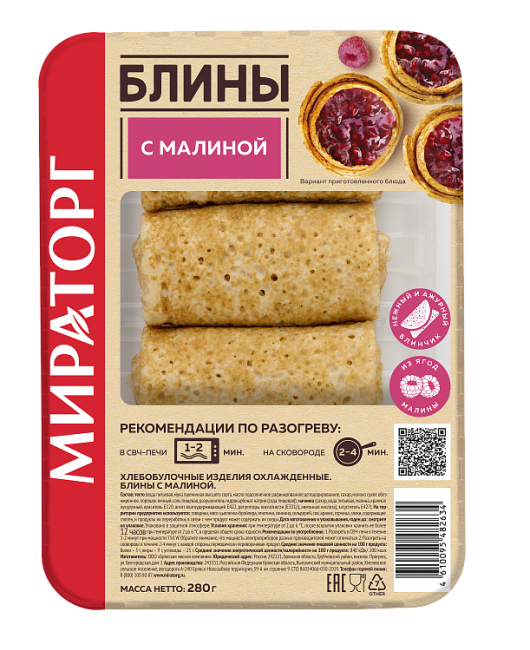 Лесная малина в сочетании с нашим ароматным тонко обжаренным блинчиком создают вкусный и полезный традиционный десерт. Побалуй себя и своих близких!