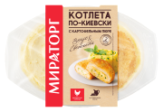 Картофельное пюре (картофель свежий, молоко питьевое, масло, соль, глюкоза ферментированная, мальтодекстрин), котлета (филе грудки кур замороженное, вода питьевая, мука пшеничная, масло сливочное, масло растительное подсолнечное рафинированное дезодорированное, кожа тушки кур замороженная, крахмалы (картофельный, гороховый, тапиоковый, пшеничный), белки (соевый, молочный), соль, волокна пищевые (клетчатка пшеничная), стабилизаторы (метилцеллюлоза, моно- и диглицериды жирных кислот
