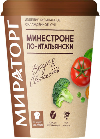 вода питьевая, капуста брокколи быстрозамороженная, помидоры быстрозамороженные, морковь свежая очищенная, лук репчатый свежий очищенный, перец красный быстрозамороженный, капуста цветная быстрозамороженная, картофель свежий очищенный, фасоль белая консервированная (фасоль белая, вода питьевая. соль), сельдерей корень свежий, масло подослнечное рафинированное, горошек зеленый быстрозамороженный, бульон овощной (соль, мальтодекстрин, натуральные ароматизаторы, овощи сушеные и пряные травы
