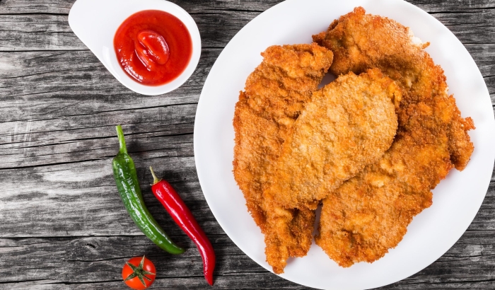 Филе куриное, сухари панировочный, мука, яйцо, соль, специи, масло растительное, консервант бензоат натрия Е211