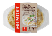 Паста карбонара "Мираторгг" прекрасно подойдёт для обеда в офисе или приятного вечернего ужина. Сливочный соус, приготовленный по классическому итальянскому рецепту, прекрасно сочетается с ароматным беконом натурального копчения и нежным сыром, придавая пасте такой знакомый и в то же время изысканный вкус.