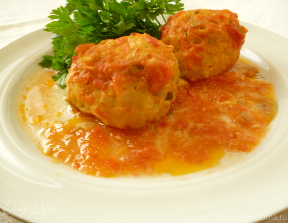 Блюдо из рыбного фарша и риса в овощном маринаде