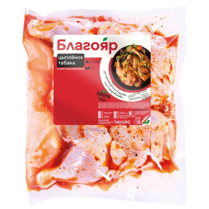 Тушка цыпленка-бройлера, соль пищевая, пряности молотые, (перец, чеснок, томат, чабер, горчица), декстроза, усилитель вкуса и аромата (глутамат натрия), антиокислители, (изоаскорбат натрия, лимонная лислота), регулятор кислотности (ацетат натрия), загуститель (ксантановая камедь), ароматизаторы (паприка, чили, чеснок, мясо).