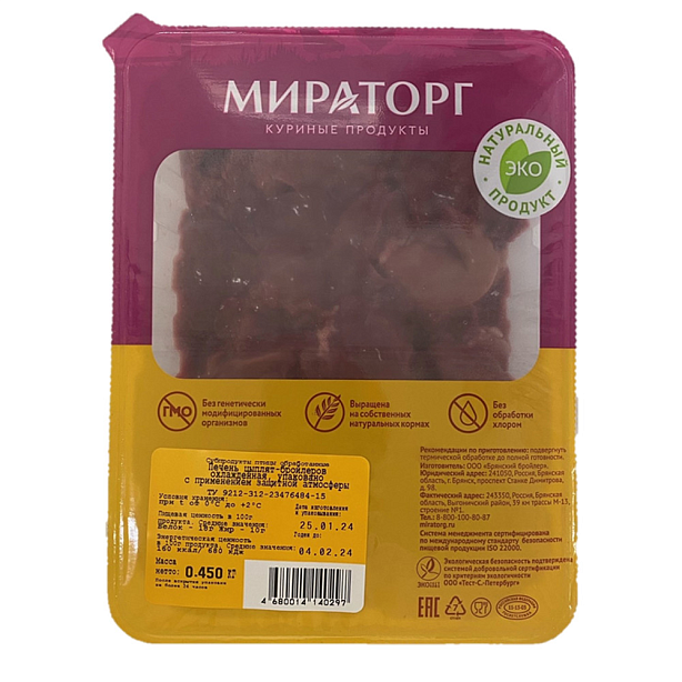 Желудки мышечные ЦБ(лоток ВСП) зам вес/Приосколье