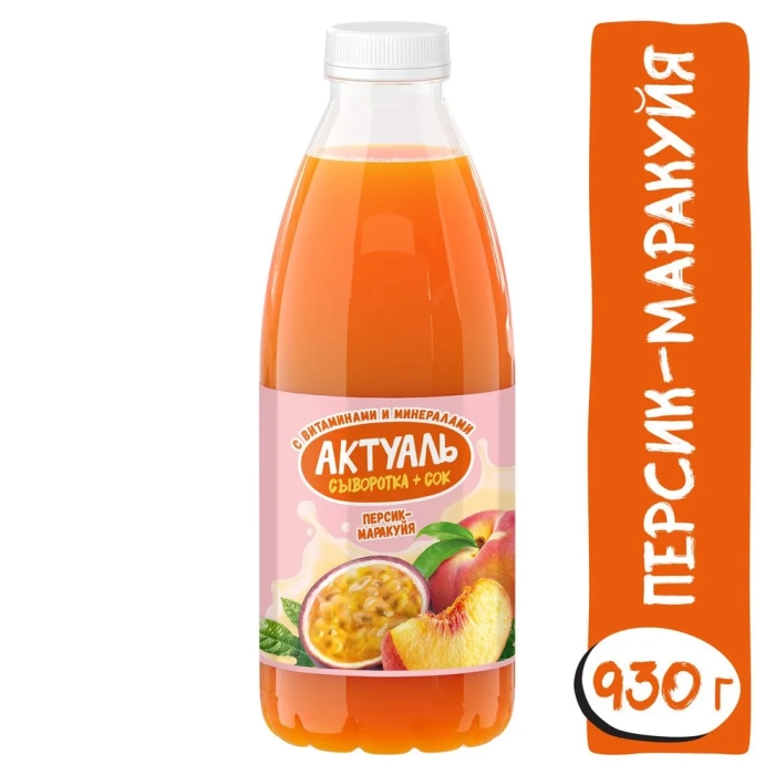 Сывороточный напиток "Актуаль" Персик-Маракуйя - это яркий и освежающий микс из молочной сыворотки и вкуснейших соков. В нем содержатся витамины B, Е и D, легкоусваиваемый белок, а также минеральные вещества. Освежись со вкусом