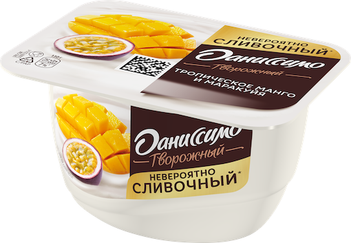Творожный десерт Даниссимо с тропическим манго и сочной маракуйей перенесёт вас к лазурным, залитым ласковым солнцем берегам, где в тени раскидистых пальм наливаются соком сладкие и ароматные экзотические фрукты. Мы добавили к ним нежнейший сливочный творожок, чтобы вы могли побаловать себя изысканным десертом, насладиться моментом и помечтать о новых путешествиях.
