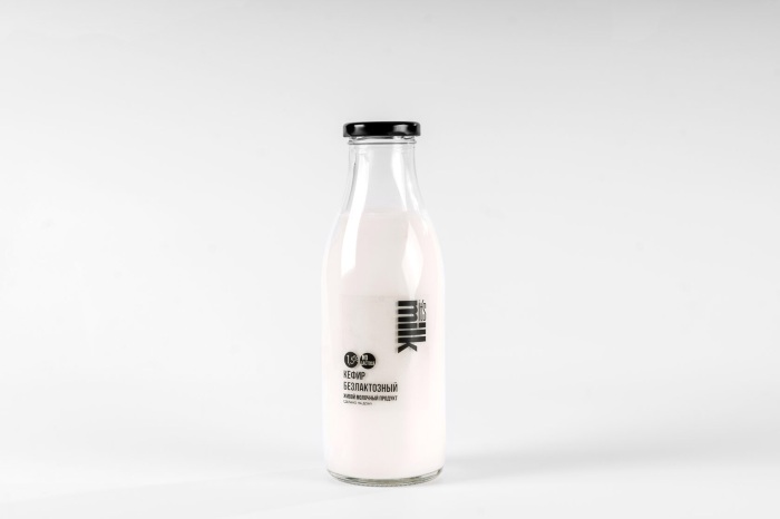 молоко безлактозное, закваска (кефирные грибки, лактококки, термофильный стрептококк, ацидофильная палочка, бифидобактерии, болгарская палочка). Содержание лактозы 0,01 мг. на 1 литр.