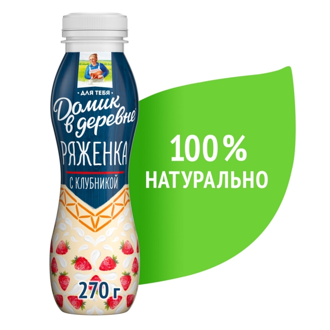 Ряженка c клубникой «Домик в Деревне» из линейки "Для тебя" сделана из натурального, топленого молока и закваски, благодаря чему имеет приятный, томленый вкус и нежную консистенцию, а также обладает натуральной сладостью без добавленного сахара! Перекуси с пользой!