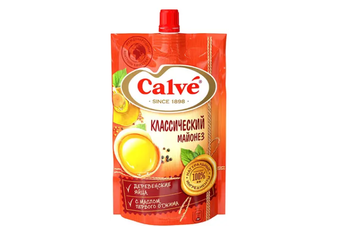 масло подсолнечное, вода питьевая, яичный желток, загуститель Е1422, сахар, уксус столовый, соль пищевая, крахмал гороховый, регулятор кислотности молочная кислота, ароматизатор, горчичный порошок, перец белый, антиокислитель Е385, краситель каротины