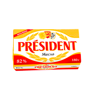 Масло President кислосливочное несоленое в/с 82% 180гр