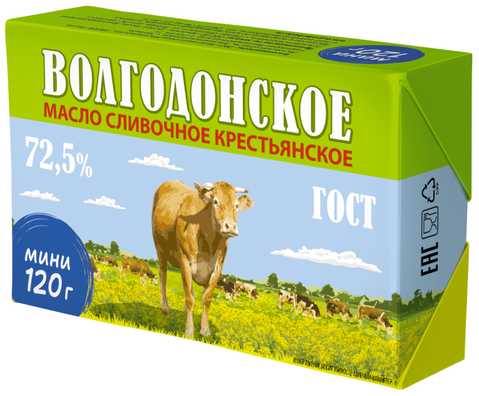 Масло Волгодонское сливочное Крестьянское 72,5% 120гр