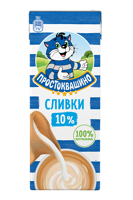 Сливки Простоквашино 10% приготовлены из 100% натурального молока с ближайших ферм, не содержат консервантов, сухого молока и растительных жиров. Они отлично подойдут для приготовления различных блюд и напитков, в том числе кофе.