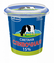 Сметана 15% Экомилк Сливочная стакан 300гр