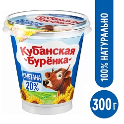 Сметана 20% Кубанская Бурёнка моностакан 300гр