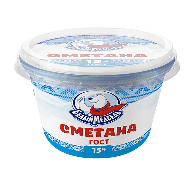 Сметану "Белый Медведь" производят традиционным способом из сливок путем сквашивания их закваской, приготовленной на чистых культурах молочнокислых бактерий. Сметана не содержит никаких посторонних добавок, благодаря чему имеет приятный кисломолочный вкус и нежную консистенцию
