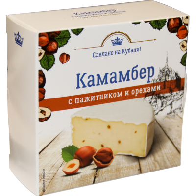 молоко цельное, молоко обезжиренное,орех фундук, пажитник термофильные и мезофильные заквасочные микроорганизмы, культура Penicilium candidum, соль поваренная пищевая, молокосвертывающий ферментный препарат микробного происхождения, уплотнитель- хлорид кальция