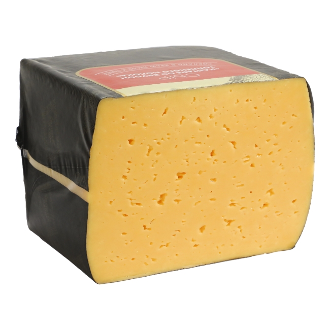Имеет мягкий сливочный вкус и плотную структуру. Это универсальный продукт, который прекрасно подходит и для приготовления бутербродов и салатов, и для использования в качестве ингредиента различных блюд.