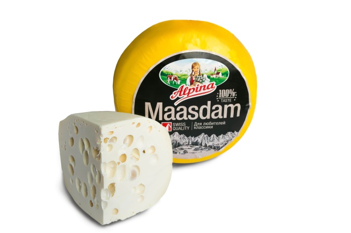 Сыр Маасдам имеет кремово-жёлтый цвет, специфический аромат и сладковатый ореховый пикантный вкус. Главная отличительная черта сыра Маасдам – крупные округлые глазки, получающиеся во время созревания под действием газа