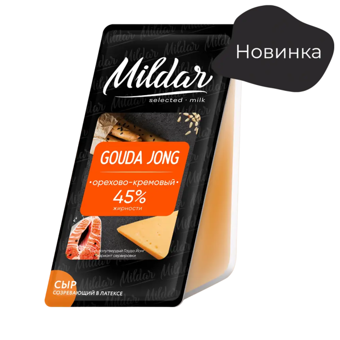 Полутвердый сыр Gouda Jong изготовлен из цельного молока методом натурального созревания.
