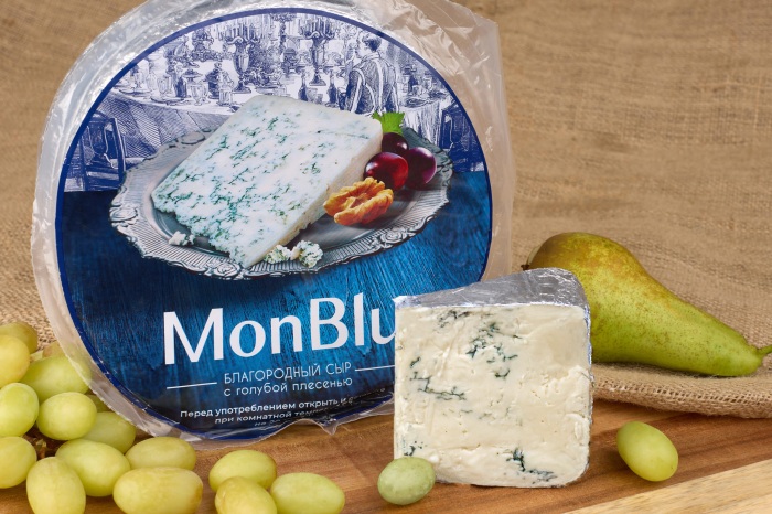 Сыр с голубой благородной плесенью тм «MonBlu» .Массовая доля жира в сухом веществе 50%.