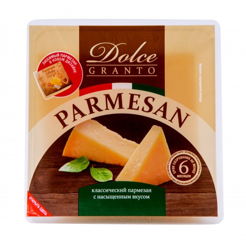 Сыр твердый Пармезан Dolce – это натуральный продукт, созданный по старейшим традициям сыроделия. Его называют король сыров и сыр королей! Яркий запоминающийся вкус и пикантное послевкусие, тонкий аромат и необычайная текстура – все это Пармезан. Кулинары и ценители утверждают, что невозможно найти продукт, который бы не сочетался с этим твердым сыром. Пармезан Dolce прекрасно подходит к вину, фруктами, мясу, морепродуктам. Известные шеф-повара создают на его основе эксклюзивные уникальные блюда
