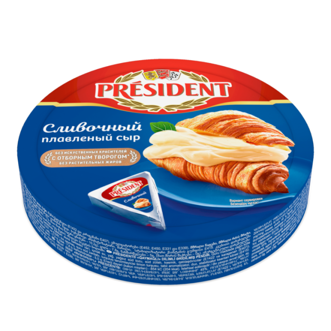 Сыр (содержит уплотнитель хлорид кальция), вода питьевая, масло сливочное, сухое обезжиренное молоко, молочный белок, творог, загустители (Е1422, Е407), эмульгаторы (Е452, Е450, Е331, Е339), сливки сухие, сыворотка молочная сухая, регулятор кислотности лимонная кислота, ароматизатор натуральный, соль, стабилизатор (Е415)