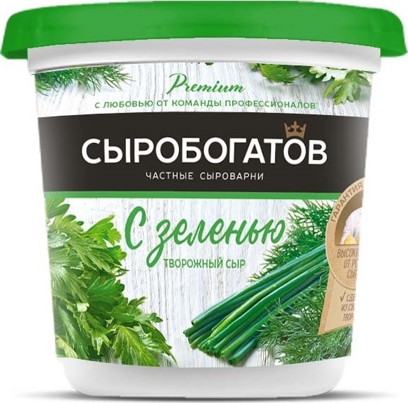 творог, масло сливочное, овощной наполнитель « С зеленью» (укроп, петрушка, лук, чеснок, соль, стабилизатор дикрахмалфосфат оксипропилированный, регулятор кислотности лимонная кислота, ароматизатор «зелень», консервант сорбат калия) вода питьевая, желатин пищевой, загуститель камедь целлюлозы, декстроза, загустители камедь рожкового дерева и карагинан, фруктоза, носитель хлорид калия, соль, эмульгатор Е339, консервант низин.