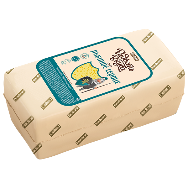 Сыр Львиное сердце ТМ Радость Вкуса имеет мелкий резной глазок и умеренно твердую текстуру. Уникальная рецептура, по которой создается сыр, придает ему утонченный вкус и наполняет ароматом.