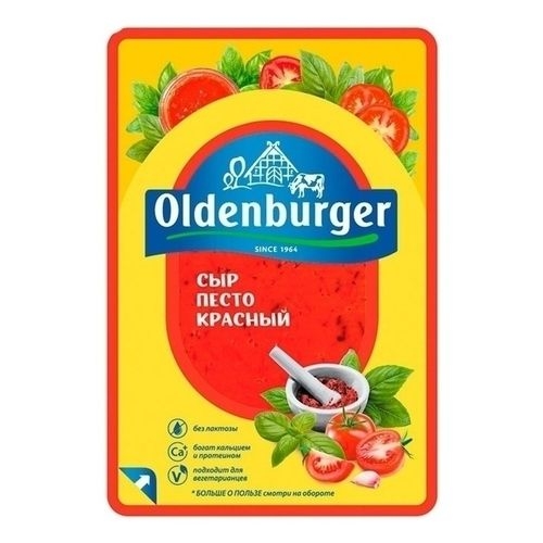 Сыр OLDENBURGER Песто красный является ярким и необычным украшением сырной тарелки. Он имеет красный цвет и исключительный вкус, соответствующий томатному соусу Песто красный. Сыр Песто красный отлично сочетается с красными сухими винами.