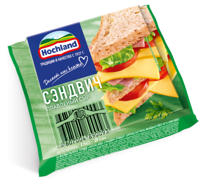 Ломтики плавленого сыра Hochland Сэндвич обладают нежным сливочным вкусом и идеально подходят для приготовления любого сэндвича. Они отлично подойдут для сэндвича с любыми ингредиентами – мясом, рыбой, зеленью и овощами. Благодаря удобной индивидуальной упаковке сэндвичи можно готовить где угодно. Немного фантазии и Ваш идеальный сэндвич готов!