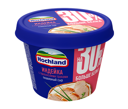 Больше белка, максимум вкуса Hochland - плавленый сыр «Индейка с прованскими травами» в ванночке 230г. Идеально подойдет для сытного завтрака или перекуса, а также понравится тем, кто следит за своим рационом.