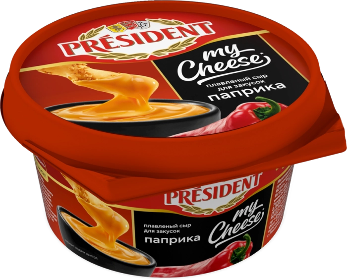 Сыр плавленый PRESIDENT My Cheese Паприка, для закусок 51% обладает пикантным выразительным вкусом и нежной консистенцией. Он легко намазывается на хлеб, крекеры, тосты. Такой сыр можно использовать для приготовления закусок, подавать как дополнение к мясным блюдам, добавлять в соусы.