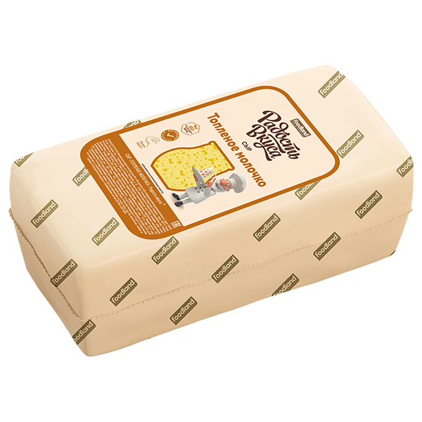 Сыр Топленое молочко ТМ Радость Вкуса отличается нежным вкусом топленого молока, обладает насыщенным ароматом, имеет мелкий резной глазок.
