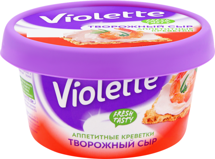 Сыр творожный Виолетта с креветками КАРАТ произведен из натурального коровьего молока высшего сорта с нежным сливочным вкусом.
