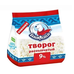 Творог Белый медведь 9% стабилобэг 250гр