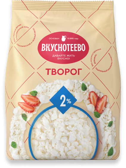 Творог — идентичен деревенскому творогу по вкусу и консистенции, а по чистоте намного превосходит его благодаря ультрасовременной линии по производству творога Tewes Bis. Творог производится из натурального молока с собственных ферм, сквашенного натуральными сычужными заквасками, поэтому он необыкновенно вкусный и полезный.