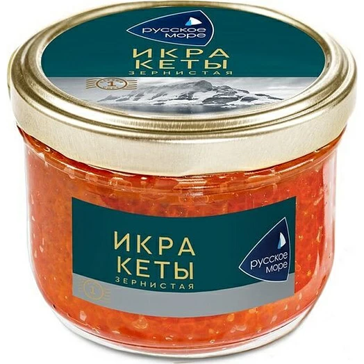 Икра лососевая (кета) Русское Море станет прекрасным ингредиентом для приготовления изысканных праздничных бутербродов и канапе.Икринки имеют насыщенный янтарно-красный цвет.Обладает восхитительным манящим ароматом с яркими рыбными нотками.Продукт содержится в стеклянной баночке с откручивающейся крышкой.Имеет приятную консистенцию. Икра идеально сочетается со вкусом белого хлеба,а также хрустящих хлебцев.Икра может выступать в роли изящного украшения различных салатов.Красная икра кеты является