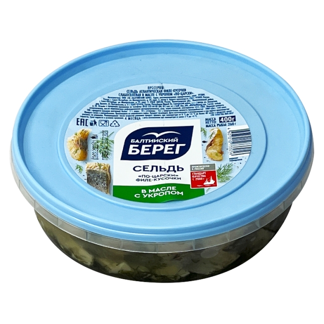 Сельдь слабосоленая БАЛТИЙСКИЙ БЕРЕГ «По-царски» – это натуральный и полезный продукт с богатым вкусом и тонким ароматом. Жиры, содержащиеся в рыбе, помогают снизить риск сердечно-сосудистых заболеваний, поскольку относятся к категории «полезных». Кроме этого, регулярное употребление сельди помогает свести к минимуму риск такого заболевания, как диабет. Сельдь содержит антиоксиданты, Омега-3 жирные кислоты, селен, витамины D и B12. Продукт подойдет как в качестве основного блюда, так и для приго