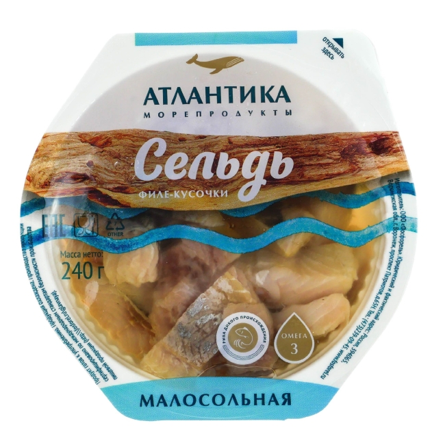 Пресервы. Сельдь атлантическо-скандинавская малосольная филе-кусочки в масле