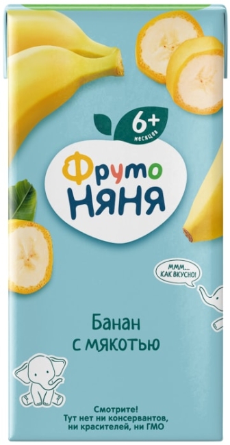 ФрутоНяня нектар банановый с мякотью для питания детей раннего возраста. Гомогенизированный.