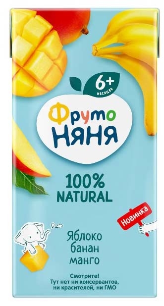 Ароматное яблоко, солнечный банан и спелое манго – настоящая палитра вкусов и ароматов! Богатые клетчаткой фрукты объединились в микс, чтобы стать ярким открытием для малыша.