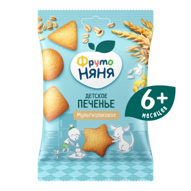 "ФрутоНяня" Печенье 120г растворимое мультизлаковое, обогащенное витаминами и минеральными веществами для питания детей раннего возраста.