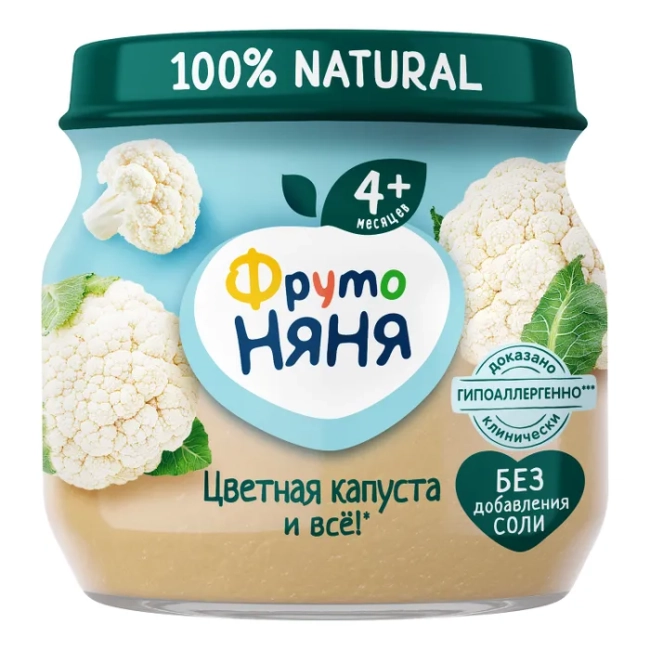 ФрутоНяня пюре натуральное из цветной капусты для питания детей раннего возраста. Гомогенизированное. Стерилизованное.