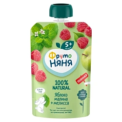Пюре ФрутоНяня пауч 90гр яблоко малина мелиса