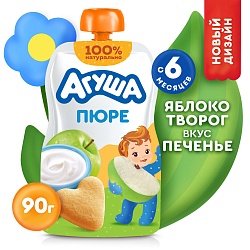 Пюре Агуша фрукт/мол Яблоко/творог/печенье PouchPack 90г