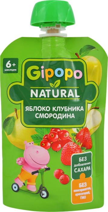 Пюре фруктово-ягодное GIPOPO Яблоко, клубника и красная смородина предназначено для питания детей с 6 месяцев. Этот продукт сочетает в себе свежесть яблок, сладость клубники и легкую кислинку красной смородины. Пюре с естественным вкусом приготовлено без добавления сахара и искусственных компонентов и обеспечивает малыша необходимыми витаминами и минералами.