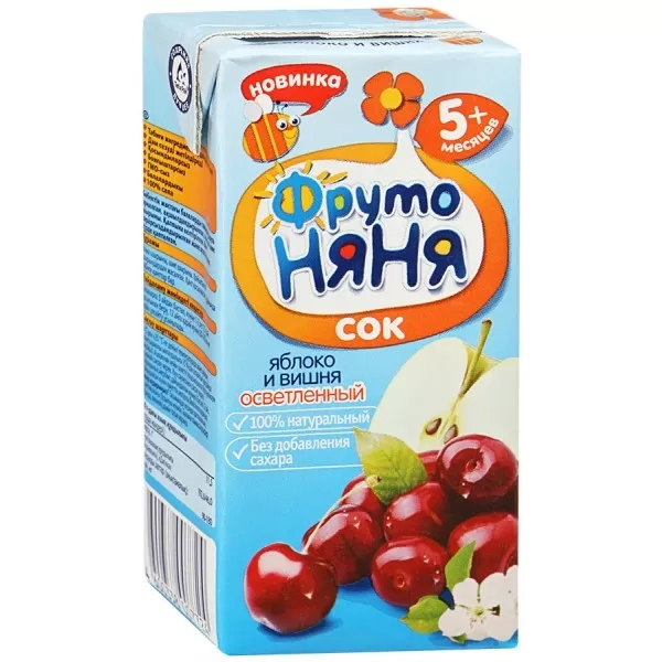 ФрутоНяня сок из яблок и вишни осветленный для питания детей раннего возраста. Восстановленный.