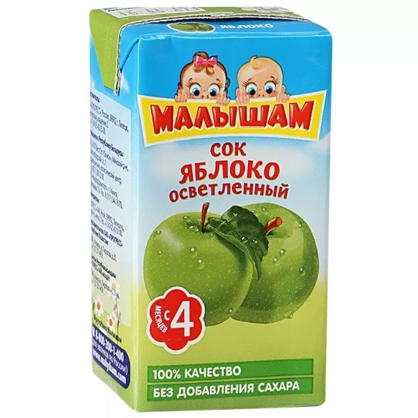 Сок Фрутоняня Малышам яблочный осветленный без сахара предназначен для питания детей с 4 месяцев. Без добавления консервантов, красителей и искусственных добавок.